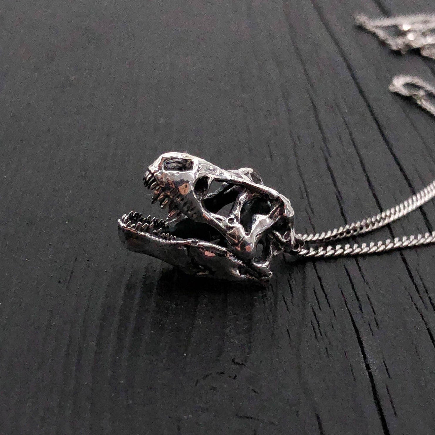 Silver T Rex Skull Pendant Necklace In Solid Hand Cast Etsy Uk